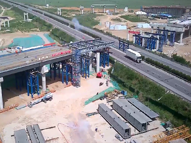 球友会手机版兰考至沈丘高速公路兰考至太康段三标钢箱梁施工工程顺利开始首次顶推施工
